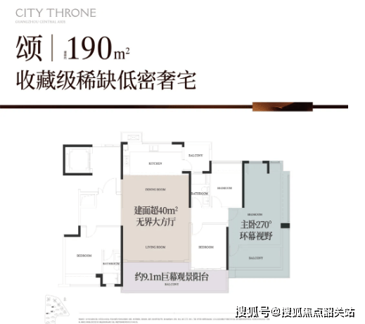 190㎡户型为 2 梯 2 户板楼,层高 3.1 米,空间开阔,居住舒适度高。240㎡大平层作为楼王产品,独栋板楼设计,户户单边位置,三面赏景,标配约 9㎡奢阔入户电梯厅,私密性和尊贵感十足。