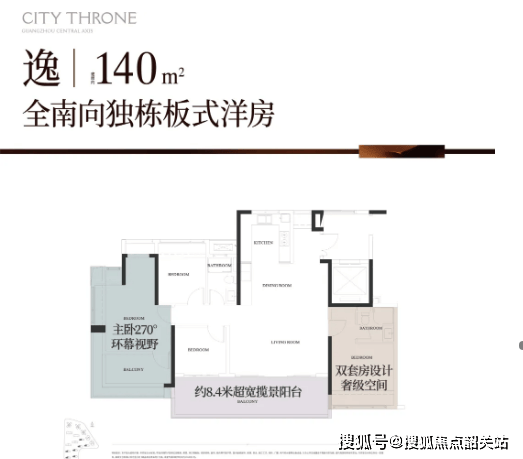 140㎡户型有 2 梯 2 户板楼和央景楼王两种配置,板楼设计保证南北通透,央景楼王则主打 270° 飘窗 + 约 8.4 米南向巨幕阳台 + 双南向套房,四开间朝南,通风采光极佳,还能眺望中轴浮岛森谷和白云山景观。