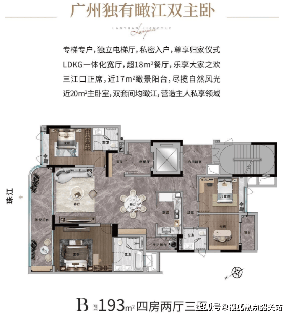 广州·兰园江悦位于广州市荔湾区白鹅潭CBD核心区域,是该区内的一个高端江景住宅项目。该项目由兰园地产开发,占地面积约为1.4万平方米,建筑面积为2.7万平方米,容积率为≤2.68,绿化率达到了40%。项目总户数仅有68户,产品面积涵盖约193㎡和285㎡两种户型的大平层豪宅。