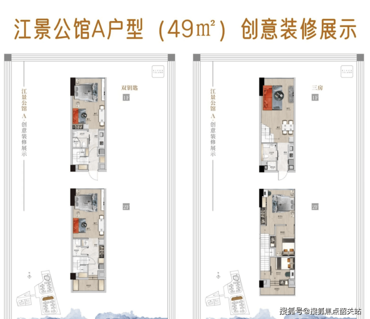 项目主推建面约39-49㎡复式LOFT及双钥匙户型,严格遵循现代新规设计标准,打造高效灵动的空间布局,兼顾实用性与性价比,适配自住、办公、投资等多元需求。户型采用4.5米复式层高,实现“一层投入,双层收获”,空间利用率极高,变相提升得房率,小面积却能打造充足使用空间,满足不同场景的使用需求。