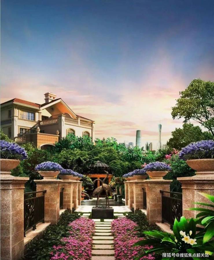 5. 合生帝景山庄由知名团队倾力打造,在立面设计上,整体立面设计延续了缦云设计语言,对“云”形态更为细腻的提取和淬炼,利用极具流动美感的曲线叠加,提升优化了建筑体量,令建筑充满未来感和标识性。同时,立面融入广州塔的小蛮腰图形元素,形成对称构图,强化了建筑仪式感和艺术性。在材料选择方面,选用灰色+香槟金色金属板和LOW - E玻璃等材料,用幕墙的方式将建筑进行全方位覆盖,表现出建筑的整体性与精致感,玻璃幕墙与艺术美学完美交融,重塑城市封面天际线。