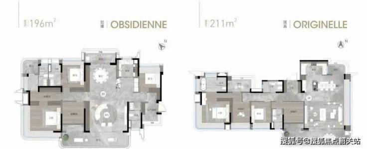 建面约196平方米和211平方米户型:南北对流,LDKB大方厅,双主套,主卧L型270度飘窗,空间体验极佳。