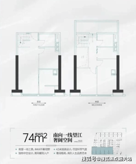 74㎡的南向江景户型,是商办 LOFT 产品线中的旗舰之作。这类户型拥有无遮挡的观景视野,让您在家中即可饱览珠江美景。南向的朝向确保了充足的日照,室内温暖明亮。