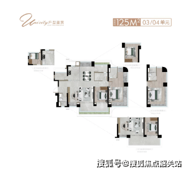 7栋和8栋则主打约125-165平方米的大四房户型,梯户比为2梯3户或2梯4户,层高分别为43层和48层。这些户型同样拥有独立的入户花园或玄关,光幕无界阳台设计,将江景与公园拥揽入怀;全龄四房设计,从二人世界到四代同堂,给成长预留更多空间;阔境主卧配备环幕江景,尽瞰花地河碧波,挑战江景环幕的视野极限;全能主卧套间星级设计,尊配步入式衣帽间、独立卫浴,礼遇菁英星级体验。