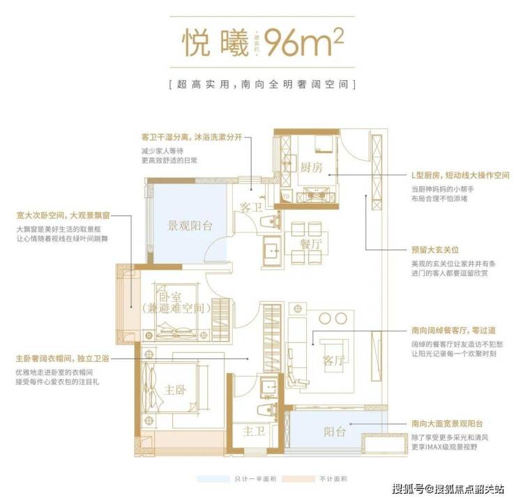 【户型鉴赏】高层建面约96㎡户型:2+1房2厅2卫