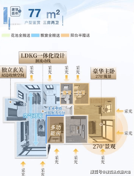 怡璟湾首推建面约76-91㎡的小三房至小四房户型,是当前白鹅潭片区罕见的高使用率户型。设计上实现“无两卫不三居”原则,80㎡以下三房配备双卫,显著提升居住舒适度。四开间朝南,L型厨房、约7米超长客餐厅阳台贯通设计,空间敞亮通透。91㎡四房更是挑战120㎡大户型标准,270°全景飘窗主卧、L型厨房、西厨岛台双动线布局等,兼顾实用性与生活情趣。零飘窗设计最大程度释放使用面积,真正实现“户型进化”理念。