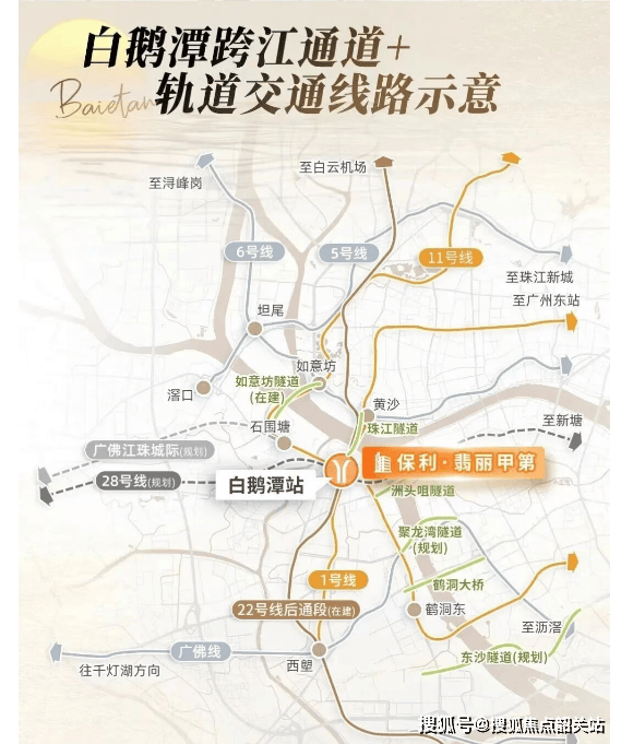 保利·翡丽甲第距地铁11号线芳村大道东站仅约300米,步行5分钟即达,11号线作为广州地铁环线,高效串联琶洲、金融城、珠江新城、天河等核心板块。如意坊隧道通车后,10分钟车程即可跨江抵达海珠滨江区域;未来还可通过内环路、洲头咀隧道快速通达广佛全域。更值得关注的是,白鹅潭片区正构建“轨道+隧道+高速”立体交通网,配合规划中的低空飞行航线,进一步缩短与白云机场、南沙及港澳的时空距离。对于在珠江沿岸CBD工作的高净值人群而言,项目真正实现“高效通勤+从容生活”的双重平衡。