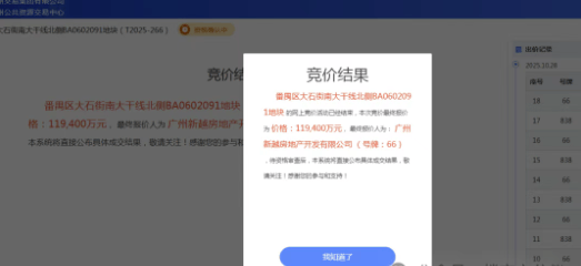 今日上午,越秀地产在激烈竞价18轮后,以总价11.94亿元成功斩获番禺区大石街南大干线北侧BA0602091地块(原鸿图工业园),溢价率8.15%,折合楼面价15422.5元/㎡。这一地块不仅地理位置优越,交通便捷,更以其低密度规划成为板块内稀缺的优质住宅用地。越秀地产此次拿地,标志着其深耕广州市场的又一重要布局,并有望为区域带来全新的人居体验。