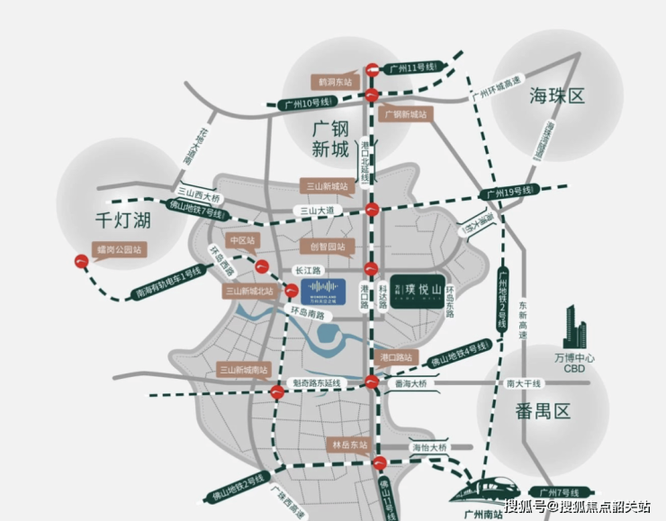 万科璞悦山位于佛山三山新城,紧邻广州边界,区位优势显著,被誉为佛山未来的城市门面。项目周边路网完善,九横八纵的交通规划、多座跨江桥梁及多条地铁线路贯通全城,实现快速接驳广佛主要核心区域。已开通佛山二号线和南海有轨电车首通段,规划中的佛山十一号线、四号线及七号线进一步完善地铁网络。通过海怡大桥、番海大桥等直通桥,居民可便捷到达广钢、鹤洞东、海珠等区域。交通便利性不仅提升日常通勤效率,也增强了三山新城的区域吸引力,为项目未来增值提供保障。