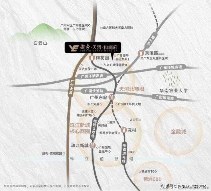 广州的城市发展脉络,始终沿着中轴线向北延伸。这条贯穿南北的黄金走廊,不仅连接着珠江新城的繁华,更串联起金融城、智慧城等新兴产业高地。越秀天河和樾府,正是坐落于这条中轴线北延段的最关键节点——天河区梅花园板块。这里地处天河与白云两区的交界处,看似是边缘,实则是枢纽。它既拥有天河区的行政归属、教育资源和高尚圈层,又具备白云区的生活烟火气与广阔发展空间。