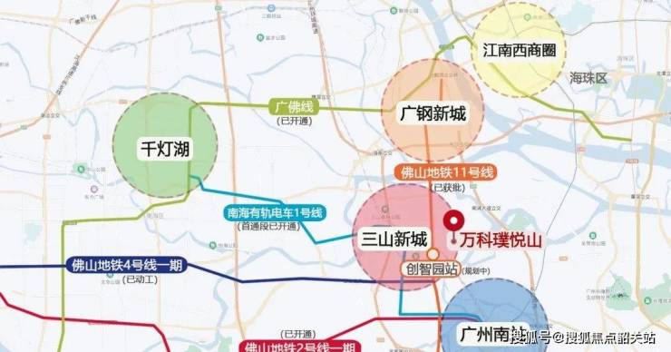 万科璞悦山坐落于三山新城科创区核心板块,是广佛城市圈连接的桥头堡。该区域定位对标广州琶洲、东莞松山湖,正处于广佛融合与湾区一体化发展的前沿。片区规划投资超四百五十亿元,并计划实现超两千三百亿元地区生产总值。周边构建了九横八纵五大桥四地铁一轨道的立体交通网络,通过海怡大桥与番海大桥直通广州南站片区,未来将实现十分钟接驳广州南站、二十分钟联通广钢与海珠、六十分钟通达湾区核心城市。交通优势突出,为该项目赋予极强的通勤效率与城市连接力。