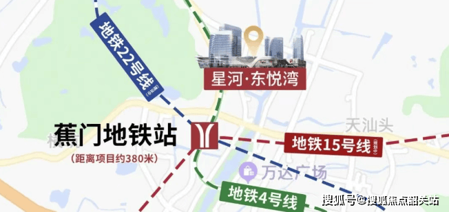 项目紧邻地铁4号线蕉门站,步行仅需10分钟左右。此外,还有规划中的15号线和建设中的22号线在此交汇,形成三地铁交汇点,极大提升了通勤效率。通过地铁,居民可以快速到达庆盛高铁站,进而转乘至深圳、香港等地,实现湾区内的便捷出行。
