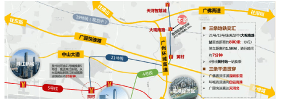 项目位于广州地铁21号线大观南路地铁站附近,扼守广州第三中轴(科创中轴)。这条中轴由琶洲电商/会展总部、国际金融城、天河智谷/天河智慧城高新科技产业四大区域组合而成,是广州新经济增长引擎。项目坐落在天河智慧城、天河智谷黄金交汇点,作为天河战略性新兴产业聚集地,未来十年将迸发强大发展动力,引领天河新未来,区域发展潜力巨大,为房产增值提供有力支撑。售楼处电话:提供购房咨询的联系方式4008285661