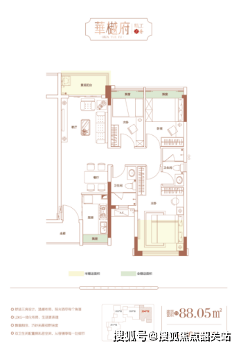 华樾府提供的户型面积从75至90平方米不等,均为三房两卫的设计,适合各类家庭结构。所有户型均实现了人车分流,并且在细节上做到了极致,入户大堂配备了定制艺术造型灯饰及地面精雕,彰显出项目的匠心独运。