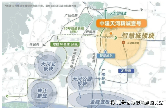 公共交通方面,项目距离地铁 21 号线天河智慧城站约 2 公里,可通过公交、便民车便捷接驳;规划中的地铁 10 号线与 30 号线交汇站华观站,距离项目仅约 600 米,未来通车后将大幅提升公共出行效率,实现地铁快速通达全城。