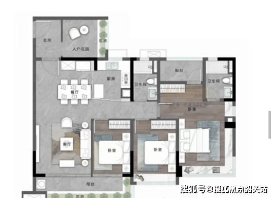 舒适型大三房 / 四房户型,空间宽敞大气,LDKG 一体化设计提升空间感与通透性,双面宽阳台延伸视野,增加采光面与使用面积。适合改善型家庭,兼顾居住舒适度与空间实用性,满足多人口家庭居住需求。