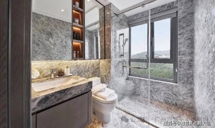 项目示范区与样板间均以顶豪标准实景呈现,归家动线从社区入口开始便尽显尊崇仪式感。现代极简风格大门搭配精致景观水景,大气恢弘且质感高级。步入社区,园林景观与建筑线条相得益彰,公区装修采用高端石材与金属线条结合,细节之处尽显匠心。进入样板间,空间尺度开阔大气,一字板楼格局带来极致通透感,全景落地窗将白云山景引入室内,视觉效果震撼。室内精装选用意大利进口冰玉、雪山银狐等名贵奢石,纹理自然、质感奢华,灯光映衬下更显高端格调。厨卫空间配备德国汉斯格雅、高仪等百年国际一线品牌,全石材铺设地面与墙面,工艺精湛、品质出众。3梯2户私梯入户设计,独立玄关空间保障私密性与尊崇感,整体空间从布局、用材到细节均达到国际顶豪水准,现楼实景可亲身感受极致居住体验。
