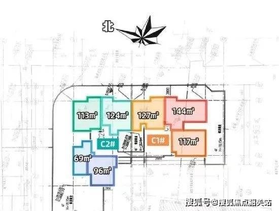 C1栋:2梯3户,楼层高20层,主推144平方米四房两厅二卫、117平方米三房两厅两卫以及127平方米三房两厅两卫。