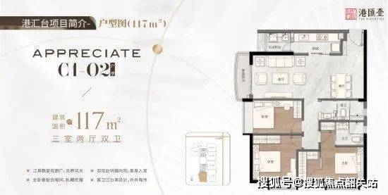 124㎡三房两厅两卫,餐客通厅,拥享开阔格局,套间主卧,步入式衣帽间,双向阳台,270度瞰江赏景,宽绰厨房,从容取洗切炒