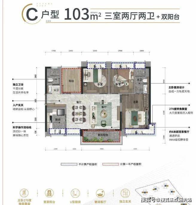 90㎡三房:此户型在空间尺度上有所提升,进一步优化了居住体验。三房格局设计合理,满足一家三口或四口的居住需求。客厅宽敞明亮,连接观景阳台,不仅增加了采光通风,还可俯瞰小区园林景观或城市街景,享受惬意时光。餐厅与厨房紧密相连,形成流畅的家居动线,方便用餐。主卧套房设计,配备独立卫生间,保障主人的私密性。另外两个次卧空间适中,可根据家庭需求进行个性化装修,如儿童房、客房或书房,满足家庭多样化的生活场景。与同面积段户型相比,多出的 7 - 10 平方米,使房间更加宽敞,居住更加舒适。