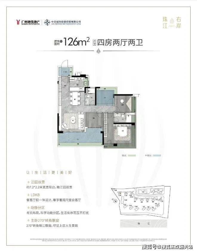 126㎡横厅/竖厅双版本提供灵活选择:横厅强调公共区域开阔性,LDKB(客厅、餐厅、厨房、阳台)一体化设计增强互动;竖厅则注重动静分区,私密性更强;