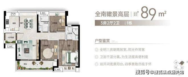旭辉・光屿南方的户型设计很讲究。建面约 75 - 114㎡的光感洋房,全是朝南开间,动静分离,户型方正实用。大尺度双联阳台设计,采光通风效果一流,阳光清风肆意入室。这种设计不仅让居住空间更舒适,空间利用率也高,得房率在同类型楼盘中有优势。真正做到了光感舒居,给您纯粹的洋房居住体验。