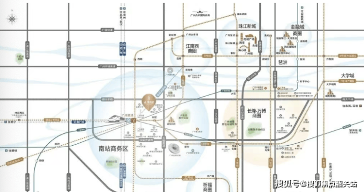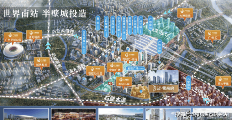 2. **文体休闲**:南站周边的广州足球公园将打造成容纳8万观众的超大型体育文化综合体,顶级赛事随时上演。周边约3km范围内有超大型文旅体资源,如约4000亩大象岗森林公园、长隆旅游度假区,外河公园与内河碧道环绕,还将打造沿江商业风情街。