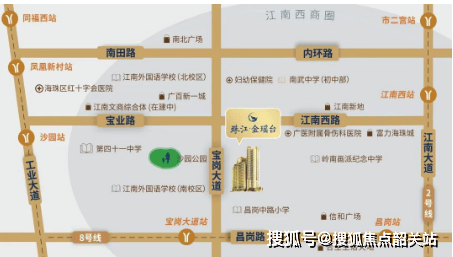 珠江·金瑶台地理位置优越,位于海珠西的核心区域,是未来海珠新活力文商旅融合圈的重要组成部分。项目紧邻宝岗大道,东临江南大道,西临工业大道,构成了三大黄金走廊的核心位置。此外,项目距离地铁2号线江南西站仅约800米,步行即可到达;而距8号线宝岗大道站也仅需约280米,从这里出发,20分钟内可直达珠江新城,便捷通达广州南站等大型交通枢纽。驾车出行也非常方便,18分钟内即可抵达珠江新城,尽享都市生活的便利。