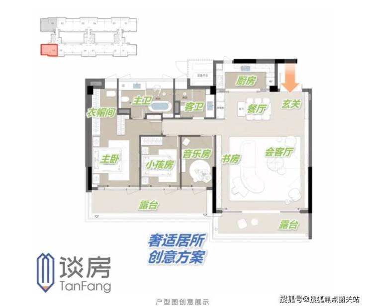 南北打造了11个采光面,户型延续了LDKG大方厅设计,客厅超大面宽,中西厨随意切换,且配置了3个阳台,大空间、观景面和通风采光通通到位。