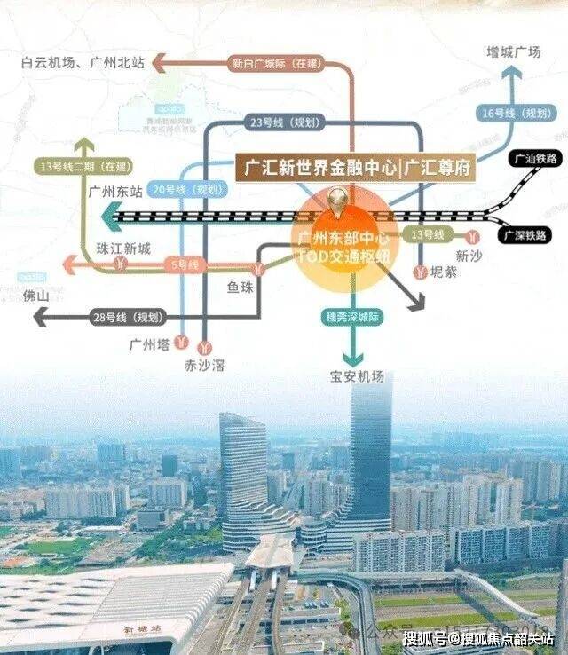 答:新世界广汇尊府紧邻新塘南站,处于 11 轨交汇的 TOD 枢纽核心范围,周边有已开通的地铁 13 号线、广汕高铁、穗深城际等多条轨道线路,可快速通达广州中心城区及湾区多个城市,日常通勤与跨区域出行都十分便捷。