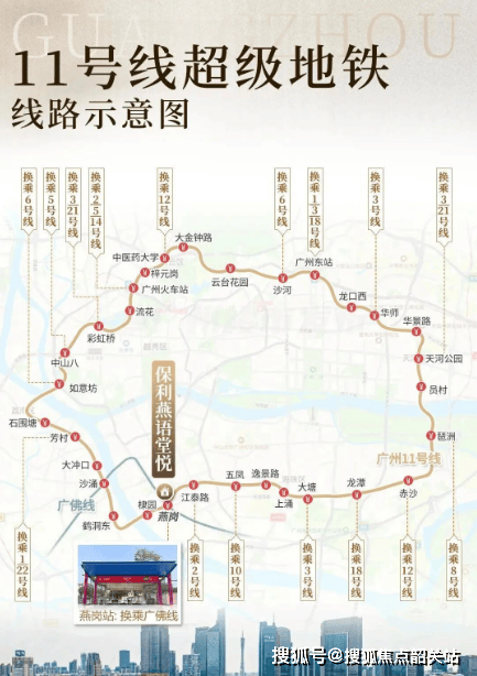 保利燕语堂悦紧邻燕岗地铁站,距离不到200米,是真正的地铁上盖物业。通过广佛线和11号线的交汇点,居民可以轻松到达广州的各个角落。此外,项目周边公交线路发达,多达28条公交线路环绕,使得日常出行更加便捷高效。