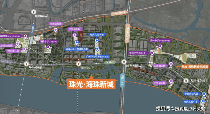 珠光·海珠新城以“15分钟全龄生活圈”为理念,系统性布局教育与医疗资源。项目内部及周边规划12所公办学校,涵盖1所12班幼儿园、1所初中、1所完全高中,并在一公里范围内新增1所幼儿园与2所小学,形成从3岁到18岁的无缝教育闭环。目前已启用南武实验小学(海珠区重点民办转公)及珠江御景湾幼儿园,2025年学区划片有望进一步明确。