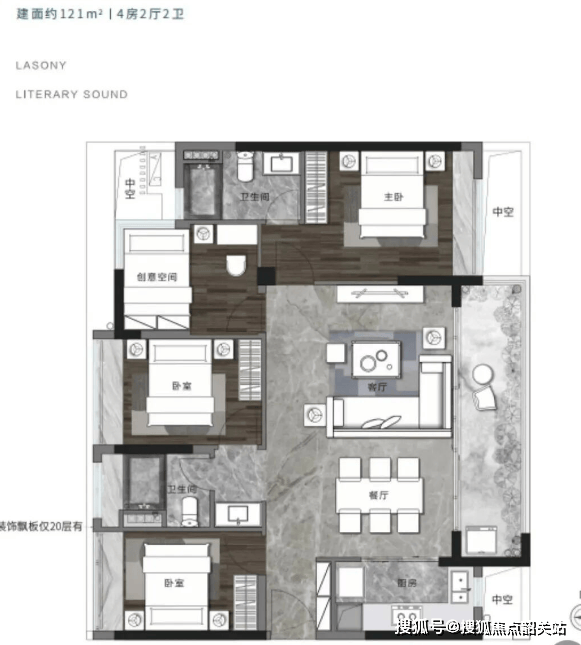 121-130平方米:18-24层,两梯四户设计,专为追求宽敞空间的家庭打造。