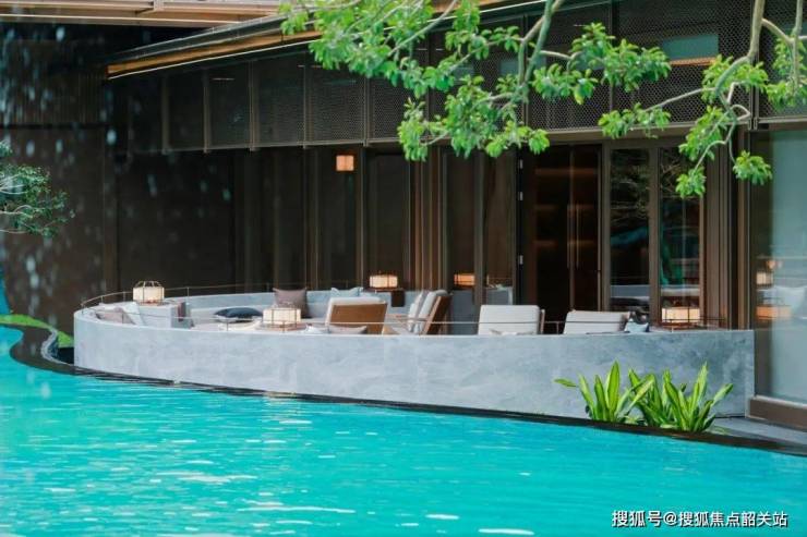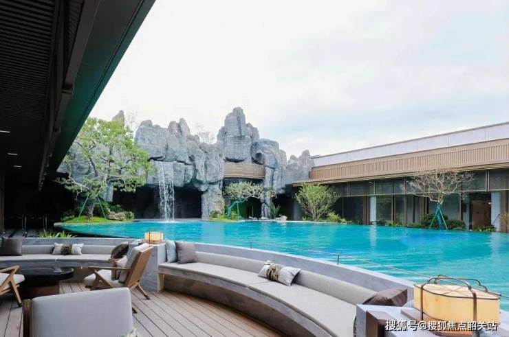 低密舒适社区:以《千里江山图》为蓝本打造,低容积率、高绿化率,搭配下沉叠瀑泳池、旱溪水景等景观设施,以及遵循中式传统的礼序归家设计,营造出舒适、优雅且富有文化底蕴的居住环境。
