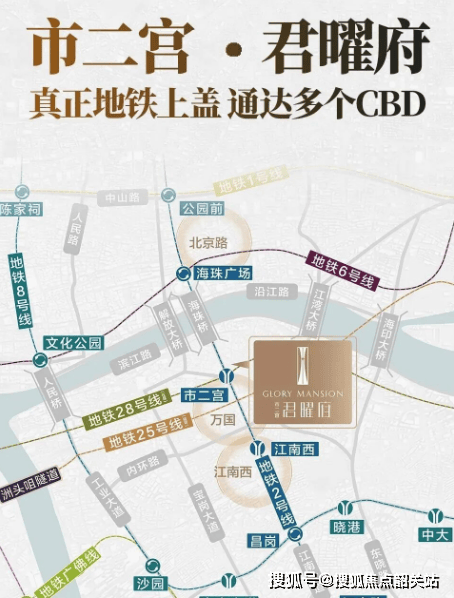 君曜府位于地铁2号线和规划中的28号线(佛穗莞城际)交汇点市二宫站上盖,出行便捷高效。此外,周边还有江南大道、内环路、滨江路等海珠主干道,家门口市二宫公交站有超过20条日夜班线路,快速通达各区,轻松解锁CBD通勤路线。
