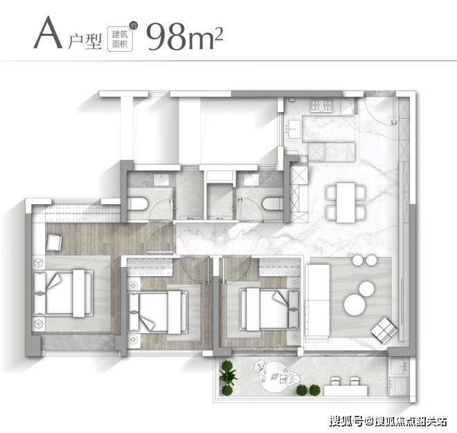 123㎡四房有两个版本(B户型和D户型),都做到三卧朝南,阳光充足。厨房是半开放中西厨,客厅餐厅厨房连成LDKG一体空间,使用动线顺畅,家人相处更温馨。整体改善属性明显,住起来舒服大气。