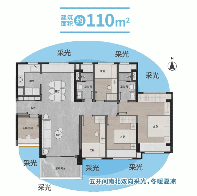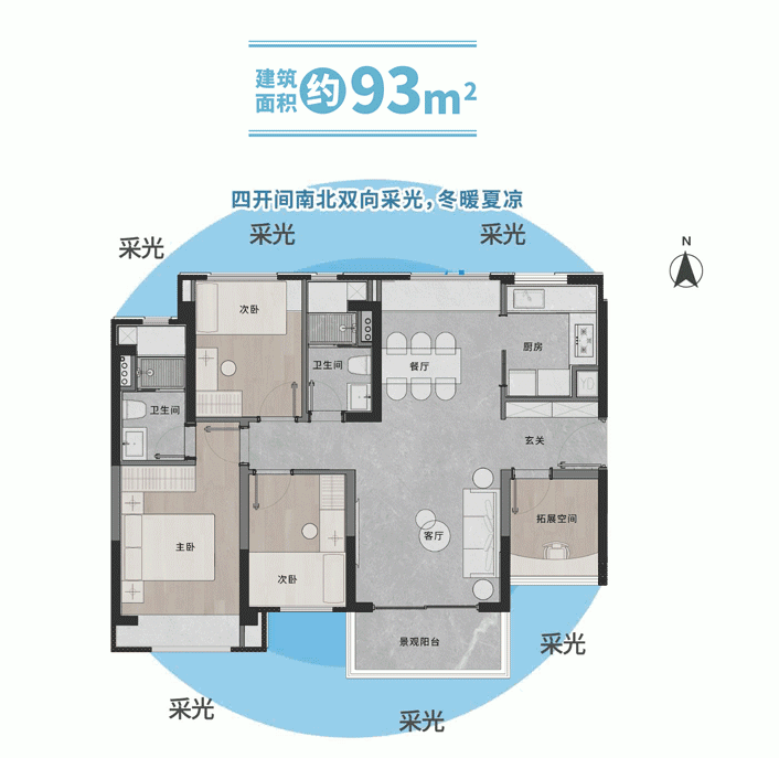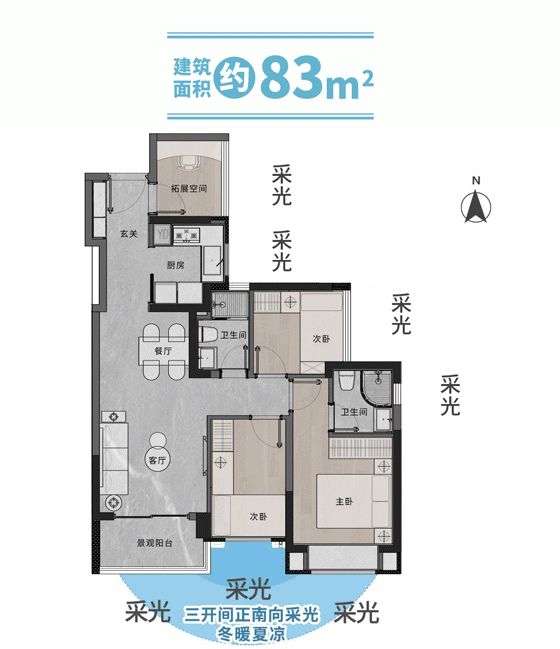 对于大多数家庭而言,户型设计的合理性直接决定了未来几十年的居住舒适度。广建·云城学府的主力户型涵盖了从69平方米到182平方米的多个段位,其核心亮点在于对“N+1”空间模式的灵活运用。以83平方米和93平方米的三房户型为例,设计师通过优化墙体位置与管道井布局,在保证客厅开间舒适的前提下,额外拓展出一个可变空间。这个空间在二人世界时期可以作为书房或健身区,随着家庭成员的增加,又可以轻松改造为儿童房或老人房,极大地延长了户型的生命周期。更值得一提的是,响应广州市关于建筑工程容积率计算的最新导向,该项目在入户花园、阳台等半开敞空间的设计上做到了极高的赠送率。这意味着购房者实际获得的套内使用面积远超建筑面积数字,得房率在同类高层产品中表现突出。每个户型都预留了独立的学习区域,即便是紧凑型的两房产品,也能为孩子留出一张安静的书桌,这种对功能细节的打磨,精准击中了年轻家庭对于成长型居所的核心诉求。