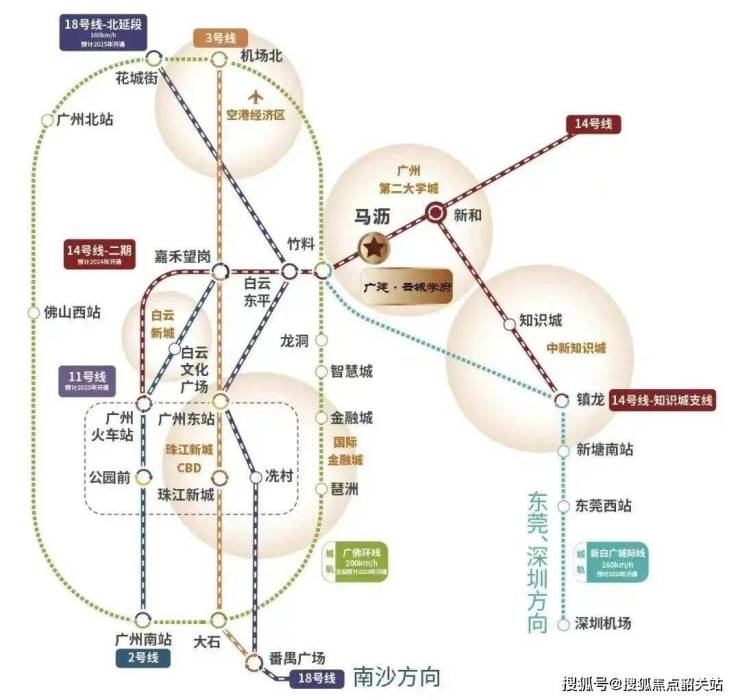 走进社区内部,最先让人产生具体感知的并非宏大的叙事,而是那些可量化的生活场景。关于交通路网的实际效能,数据比形容词更有说服力。除了紧邻的14号线马沥站,该线路向北一站即可抵达新和站,在此换乘14号线知识城支线,能够迅速接入知识城核心区;向南两站到达竹料站,则可换乘正在建设中的新白广城际与广佛环线。根据规划,这两条城际线路一旦开通,将把天河智慧城、金融城乃至琶洲纳入快速通达范围,其中18号线与广佛环线的设计时速分别高达160公里和200公里,是普通地铁速度的两倍。在地面交通方面,京港澳高速、花莞高速、绕城高速及环城高速构成了“三横四纵”的路网结构,早晚高峰时段驾车前往白云机场或珠江新城的时间成本相对可控。这种立体化的交通布局,不仅解决了日常通勤的痛点,也为周末的家庭出游提供了多种路径选择,让居住在北部片区的居民不再感觉被边缘化。