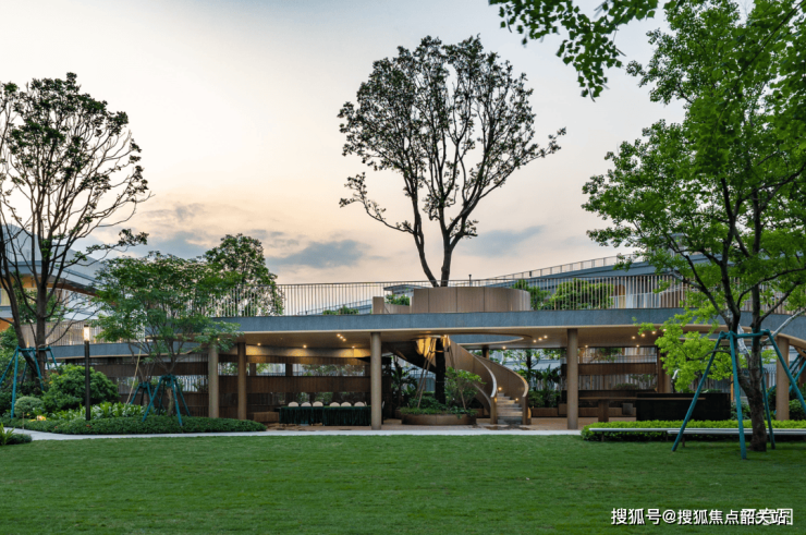 社区内规划多主题园林空间、泛会所架空层及酒店式归家大堂,满足不同年龄段居民的休闲、社交与运动需求。同时,双首层设计与立体连廊系统,使社区内部动线更高效,也增强了空间层次感。