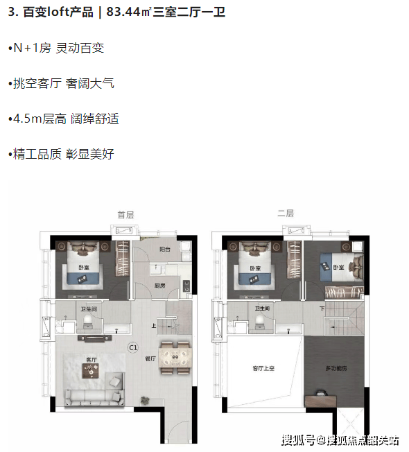 广州足球公园首推产品聚焦年轻群体及投资客群,主打高性价比、低门槛的轻奢平层公寓与百变LOFT产品。平层产品面积段约为25至92平方米,LOFT产品则覆盖约45至95平方米,兼顾自住、办公、短租等多种使用场景。其中,44平方米的一室一厅一卫平层户型,采用全明设计,配备奢阔飘窗与独立玄关,提升私密性与采光效果;59平方米户型则实现一室二厅布局,卧室直连阳台,独立卫浴干湿分离,功能分区清晰。而83.44平方米的LOFT产品更是亮点,层高达4.5米,挑空客厅营造开阔视觉感,N+1房设计赋予空间高度灵活性,可随家庭结构或使用需求自由调整。所有产品均由国企精工打造,注重细节与品质,为购房者提供兼具实用性与美学价值的居住选择。