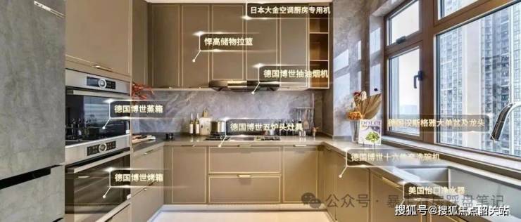 项目采用贝克洛系统门窗,具有优异的隔音、隔热、防水性能,能够有效隔绝外界的噪音和灰尘。主卧卫生间配备了面膜冰箱,方便业主存放护肤品和化妆品;厨房配备了独立的防潮除霉空调,解决了厨房潮湿闷热的问题;厨餐厅各自配备了独立的冰箱和热净饮水机,提升了生活的便捷性。室内装修采用了大量的高端奢石,纹理自然,质感细腻,彰显了项目的高端品质。
