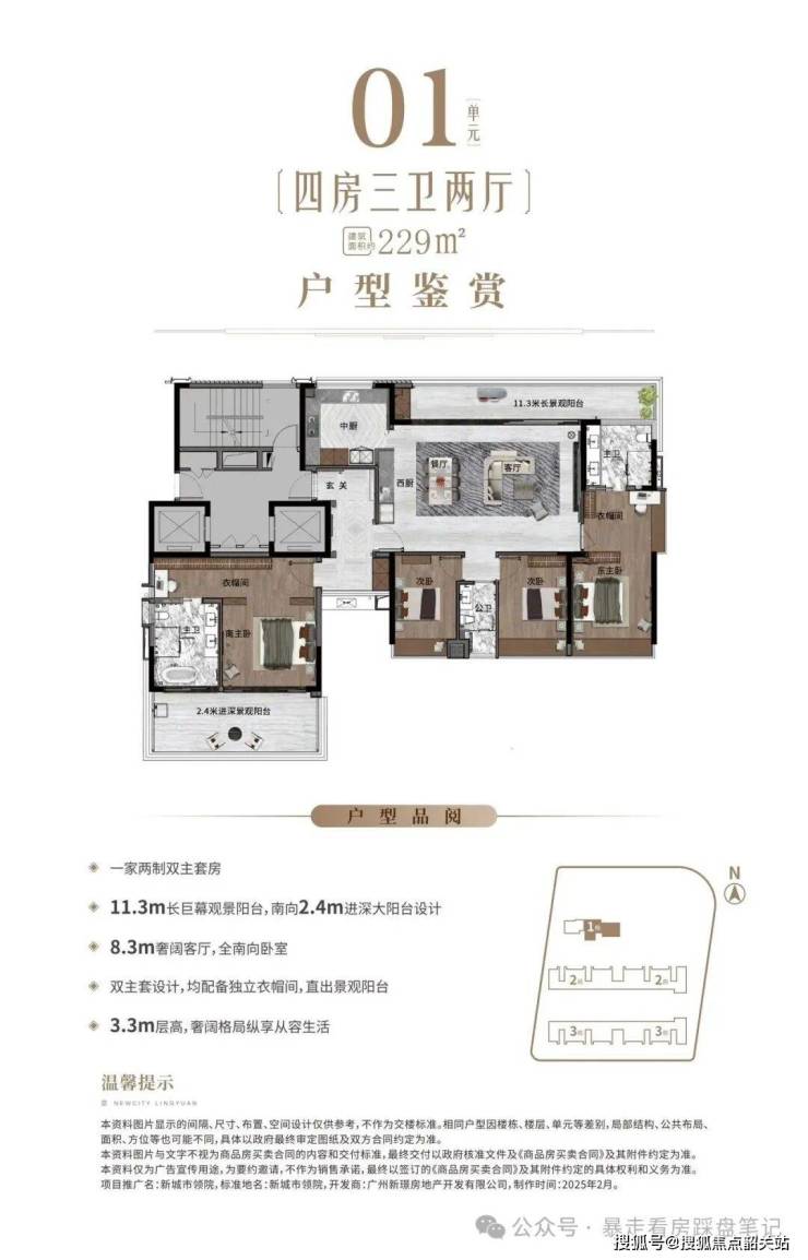 项目拥有3.3 米的真豪宅层高,比普通住宅高出 50 厘米,大幅提升了室内的空间感和舒适度。户型设计注重实用性和舒适性,合理规划各个功能区域,做到动静分区、干湿分离。所有户型均配备了宽景阳台,阳台进深达到 2.4 米,拓展了室内的活动空间,同时也为业主提供了欣赏园林景观和城市风景的绝佳场所。