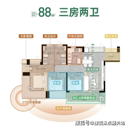 主力户型集中在88㎡至108㎡之间,全部为三至四房格局。以88㎡三房为例,南北通透,主卧带独立卫生间,次卧与客厅共享阳台,空间几乎没有浪费。98㎡和108㎡则进一步优化了公区尺度,餐客厅一体化设计让日常互动更流畅。值得一提的是,这些户型均按最新建筑规范打造,得房率明显高于区域内早期产品,在同等预算下能换来更实用的居住体验。