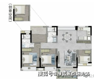 113㎡四房二卫:南北对流单边位,双向采光,方正户型设计,悠享舒适时光。
