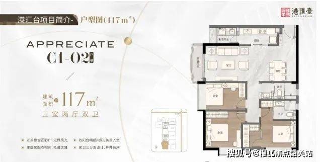 :东南向,阳光充足,餐客厅一体,空间开阔。瞰景主套房搭配 270 度望江视野,适合三代同堂家庭,尽享舒适与尊贵,满足对品质生活和景观要求高的客户。