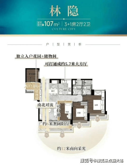 主打产品:107-181㎡四房户型,高使用率设计