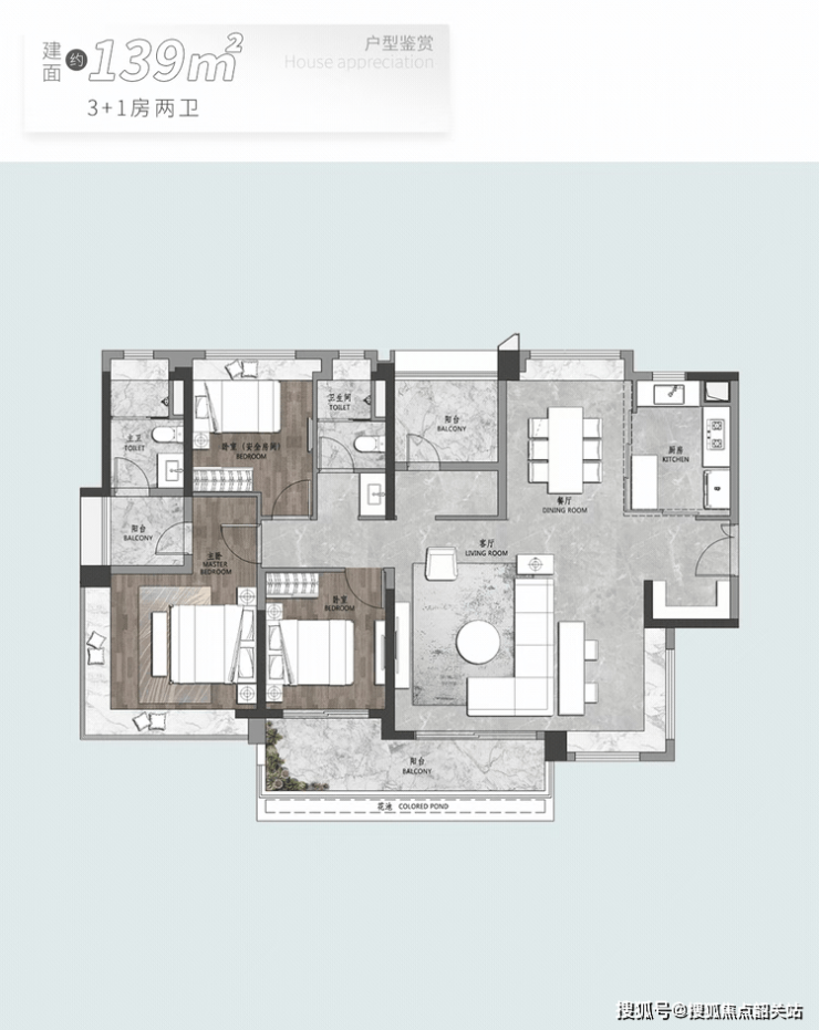177㎡四房:独梯独户,8.9米IMAX观景阳台,双主卧套房,30㎡主卧配L型飘窗;