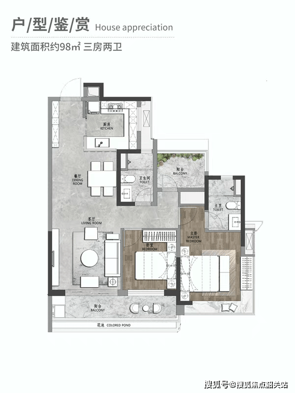 户型方面,项目主推建面约98-182㎡全南向三至四房,使用率高达95%-100%,远超市场平均水平。其中: