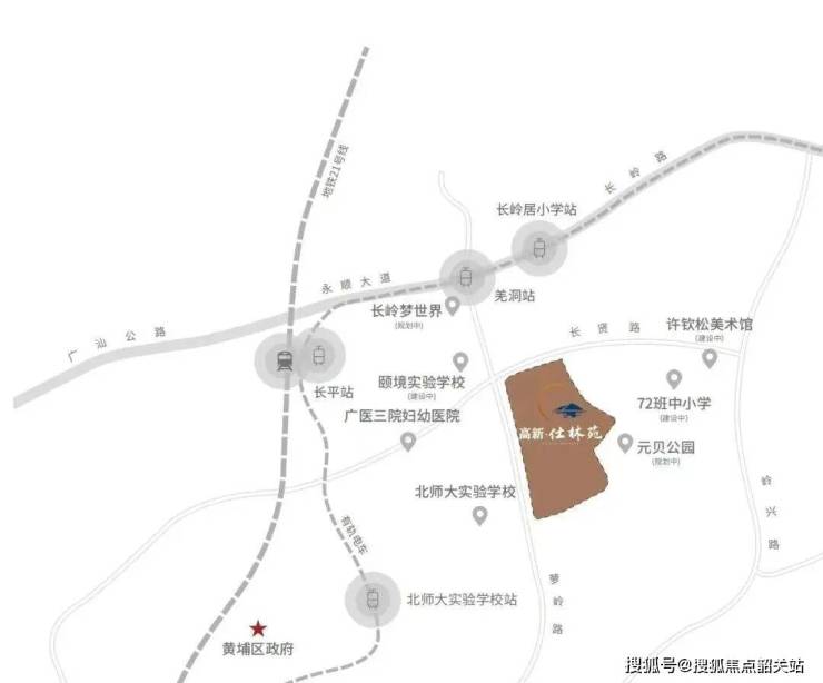教育配套堪称亮眼,项目自建 12 班幼儿园,一路之隔就是在建的 72 班中小学;周边有长岭居小学(南校区)、北师大广州实验学校(小学部)等优质学府,根据黄埔区招生政策,项目大概率纳入对口招生范围;初中对口摇号北师大广州实验学校、铁英中学和苏元中学,优质教育资源为孩子成长保驾护航。