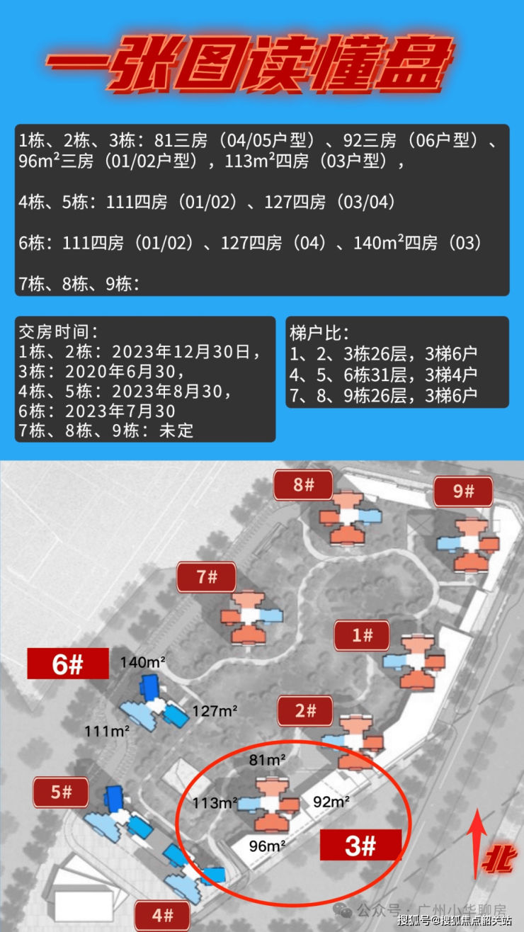 1栋、2栋、3栋: 在售 81三房(04/05户型)、92三房(06户型)、96m²三房(01/02户型),113m²四房(03户型),